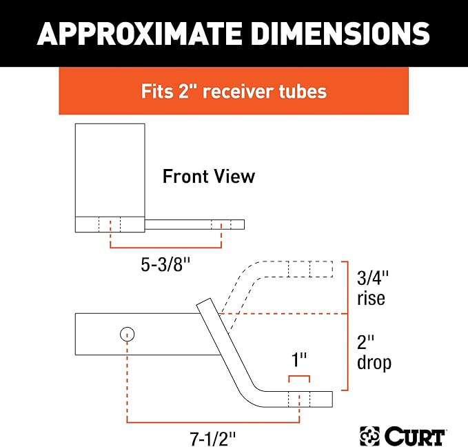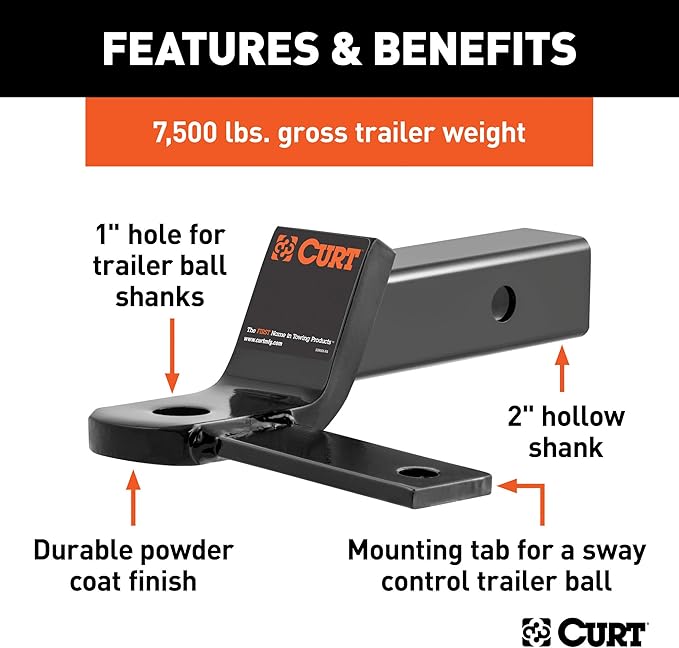 CURT 45820 Anti Sway Trailer Hitch Ball Mount, Fits 2-Inch Receiver, 7,500 lbs, 1-Inch and 5/8-Inch Holes, 2-In Drop