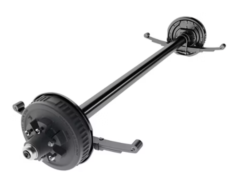 Dexter Axle, 5,200 LB Capacity, 6 on 5.5" Bolt Pattern, Electric Brake, Straight Spindle, E-Z Lube Lubrication, 95'' Hub Face, 80'' Spring Center, Double Eye Springs Pre-Mounted. EZ-Lube style cap with center grease fitting — add grease without removing the cap or repacking bearings. Replace if dented, loose, or missing — an exposed hub invites bearing failure.