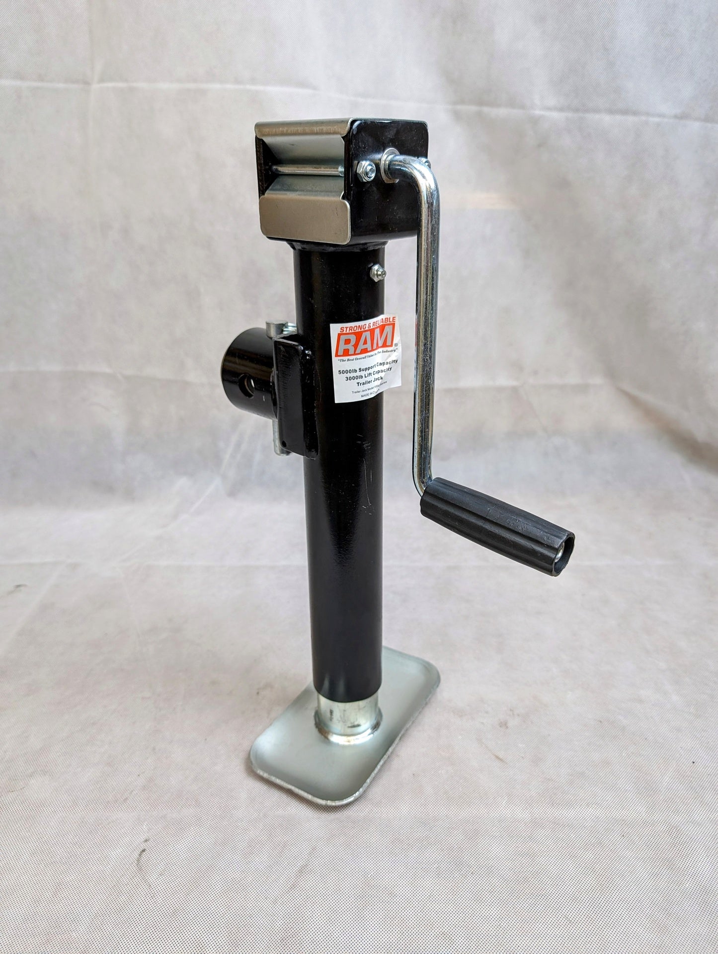 RAM Pipe mount swivel jack weld on 10" Lift SW 5000 LB.. This manual jack handles the heavy lifting of raising and lowering the trailer tongue for hitching, unhitching, and leveling. Rated at 5000 lbs lift capacity. Manual operation means zero electrical components to fail. The jack must support the full tongue weight of your loaded trailer — an under-rated jack will bend, strip gears, or collapse when you need it most.
