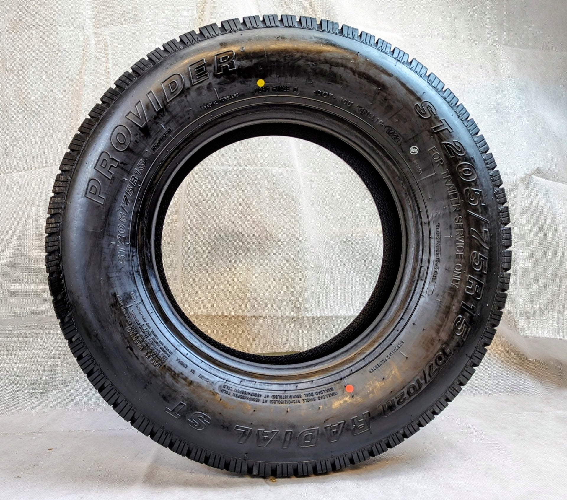 Taskmaster Provider ST 205/75R15 Provider Load Range D Trailer Tire 8 ply 15". This ST-rated trailer tire is purpose-built for towing demands that passenger tires are not designed for. Trailer tires face unique challenges: they do not steer so they are dragged through turns, they carry heavy concentrated loads, and they sit for long periods exposed to UV. ST tires address this with reinforced sidewalls, higher load ratings, and UV-resistant compounds. Never substitute passenger tires on a trailer — their flexible sidewalls allow dangerous sway.